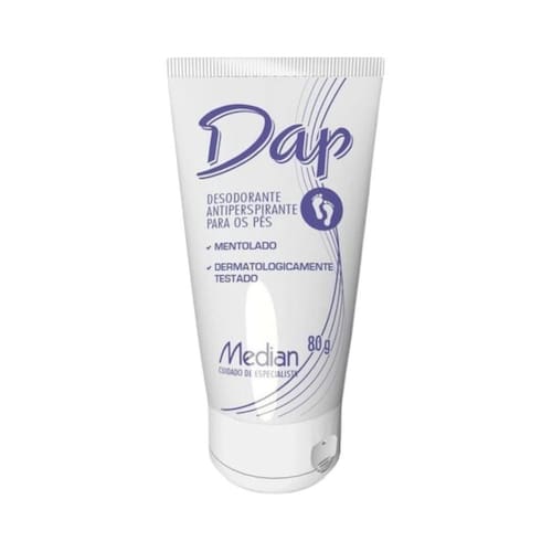 Desodorante dap para pés bisnaga 80g sem perfume Descrição O desodorante dap para pés bisnaga 80g sem perfume é a solução ideal para manter os pés frescos e secos durante todo o dia. Desenvolvido para combater a transpiração e o mau odor, este desodorante é perfeito para quem busca conforto e proteção sem fragrância. Sua fórmula suave e dermatologicamente testada é enriquecida com ingredientes que controlam a umidade e previnem o crescimento de bactérias, mantendo os pés secos e livres de odores desagradáveis. O formato em bisnaga de 80g facilita a aplicação, permitindo uma distribuição uniforme do produto. Com o desodorante dap para pés, você pode desfrutar de um dia inteiro de frescor e proteção, mesmo nas situações mais intensas. Ideal para uso diário, ele é adequado para todos os tipos de pele e proporciona uma sensação de conforto duradoura. Experimente a eficácia deste desodorante e sinta a diferença na saúde e no bem-estar dos seus pés. Modo de uso Lave e seque bem os pés antes da aplicação. Aplique uma quantidade adequada do desodorante creme nas palmas das mãos. Espalhe uniformemente sobre a planta dos pés e entre os dedos. Deixe o produto secar completamente antes de calçar sapatos ou meias. Use diariamente para manter os pés secos e protegidos contra o mau odor. Marca: Não Informado