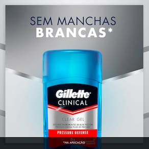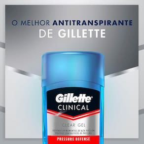 O Desodorante Gel Gillette Clinical Pressure Defense é tudo o que você precisa para ficar longe do suor e do odor causado pela transpiração. O Gillette Clinical Pressure Defense oferece proteção antibacteriana por até 48 horas contra 99% das bactérias que geram o odor corporal. Ele também fornece fragrância que dura o dia todo.