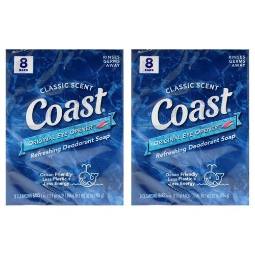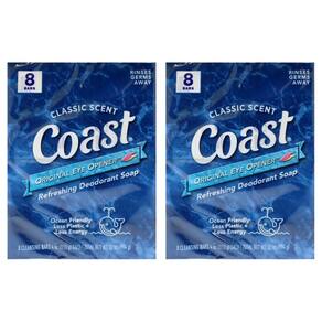 Um aroma fresco e refrescante combinado com uma espuma rica e espumosa para estimular seus sentidos e começar o dia com uma experiência reveladora. A fórmula de enxágue limpo da Coast não resseca sua pele. Ensaboe e sinta-se revigorado. O sabonete Coast Bar é uma escolha ecológica que usa menos plástico, menos energia e água na fabricação e usa um transporte mais eficiente. É difícil acreditar que estamos tomando banhos revigorantes com um frescor revelador há décadas.