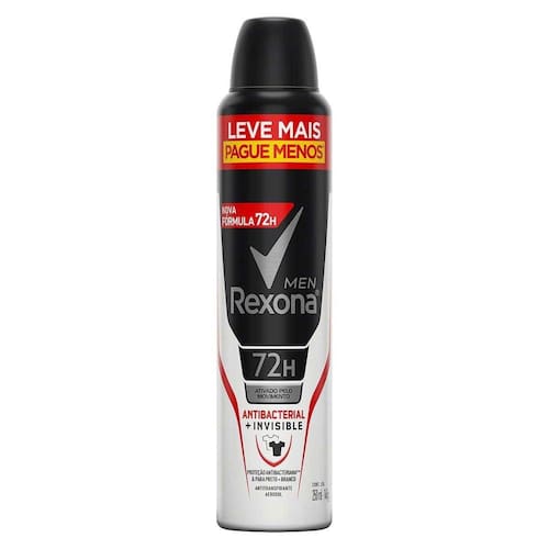 O Desodorante Rexona Aero Men Antibacterial Plus Invisible oferece proteção por até 72 horas conta com uma tecnologia invovadora que protege a roupa contra manchas brancas e amarelas e ajuda a eliminar as bactérias que causam o mau odor nas axilas . Sua fórmula proporciona melhor absorção, regulando o suor com maior eficiência.