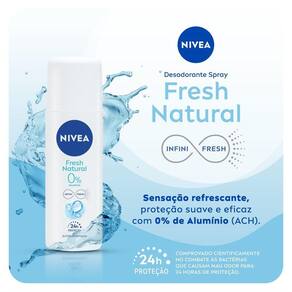 NIVEA Desodorante Spray Fresh Natural é uma opção segura e suave para cuidar das axilas, sem a presença de alumínio (ACH).