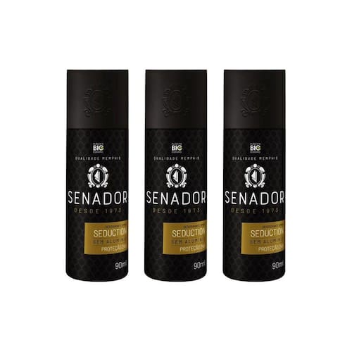 Na compra deste kit será enviado 03 unidades da desodorante spray senador seduction 90ml cada Descrição: Explore o poder da sedução com o desodorante spray senador seduction 90ml. Projetado para homens confiantes e sofisticados, este desodorante oferece uma fusão cativante de fragrâncias sensuais, criando uma aura envolvente que perdura ao longo do dia. Sua fórmula avançada proporciona uma proteção eficaz contra o odor e a transpiração, enquanto a fragrância marcante deixa uma impressão duradoura, tornando-o o complemento perfeito para a sua rotina de cuidados pessoais. O desodorante spray senador seduction 90ml é apresentado em uma embalagem elegante e moderna, refletindo a essência sedutora do produto. Seja para encontros românticos ou para o dia a dia, este desodorante proporciona uma experiência única de frescor e confiança, elevando o seu carisma. Modo de uso: 1. Agite bem o frasco antes de usar. 2. Aplique o desodorante a uma distância de aproximadamente 15 cm das axilas, mantendo o frasco na posição vertical. 3. Pulverize uma quantidade suficiente para cobrir completamente a região. 4. Deixe secar por alguns segundos antes de se vestir. 5. Reaplique conforme necessário ao longo do dia para manter a frescura e a proteção.