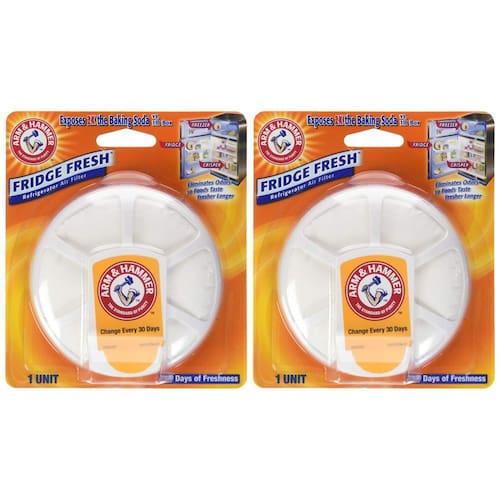 Filtro de ar fresco da geladeira Arm & Hammer Fridge Mais fácil de manobrar e armazenar, o Arm & Hammer Fridge Fresh permite armazenamento inicial, criando 2x mais disponibilidade eliminando odores. O bicarbonato de sódio geralmente é mantido na parte de trás da geladeira onde não pode ser derramado. A Arm & Hammer Fridge Fresh é capaz de pendurar e se agarrar a portas, paredes e praticamente em qualquer lugar que você quiser. Vem com um indicador de substituição conveniente para que você nunca tenha que questionar quando trocá-lo.