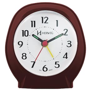 Tamanho: 9cm de altura X 8cm de largura X 6cm de espessura Maquinário: Step Tic-tac Cor do fundo: Branco Cor da Estrutura: Marrom Chocolate Base: Plástico injetado Vidro: Acrílico Usa pilha AA Ponteiros com massa luminosa Fosforescente Alarme sonoro