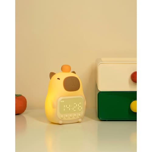 Apresentamos o Despertador Capybara Kids, uma deliciosa combinação de funcionalidade e charme projetada para apoiar a rotina de sono de seu filho. Este adorável relógio usa luz suave e ícones intuitivos para ensinar quando é hora de ficar na cama ou acordar. Sua luz noturna macia e colorida oferece conforto para crianças que dormem sozinhas. Diga olá às noites tranquilas e às manhãs mais felizes com o Capybara Alarm Clock!