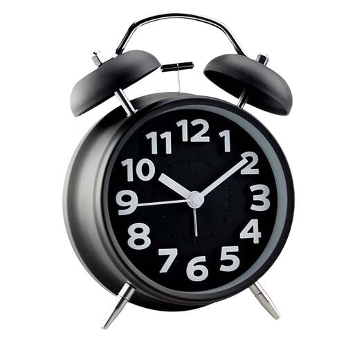 Material: invólucro de metal e mostrador de vidro Tamanho: 11,5* 5,9* 15,9 cm Peso: 350 g Design atemporal de sino duplo: com um design clássico de campainha dupla preta, este despertador adiciona um toque vintage a qualquer quarto ou mesa, combinando funcionalidade com estilo. Alarme alto para pessoas que dormem profundamente: o mecanismo de campainha dupla garante um som de alarme alto e claro, tornando-o a escolha ideal para pessoas que dormem muito ou para quem precisa de um alerta forte. Movimento de quartzo sem tique-taque: O relógio opera com um movimento de quartzo sem tique-taque, proporcionando um ambiente tranquilo para dormir sem a distração dos sons de tique-taque. Construção metálica durável: feito com uma caixa de metal resistente e um mostrador de vidro, este despertador foi feito para durar e oferece durabilidade para uso diário. Display analógico de fácil leitura: o relógio apresenta números grandes em negrito e ponteiros fáceis de ler, facilitando a verificação da hora em um piscar de olhos.