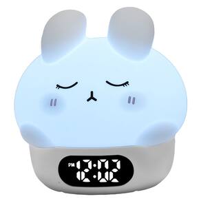 Material: silicone Tamanho: 10* 5,5* 10 cm Peso: 244 gDesign adorável de coelho: este lindo despertador em forma de coelho adiciona um toque divertido ao quarto ou mesa de estudo de qualquer criança, com seu corpo macio de silicone e expressão doce. Característica de luz noturna LED: O relógio também funciona como uma luz noturna LED suave, proporcionando um brilho suave que é perfeito para a hora de dormir ou como uma luz noturna reconfortante para crianças. Display digital claro: o display digital de fácil leitura mostra a hora com clareza, facilitando a verificação da hora por crianças e estudantes, mesmo no escuro. Construção durável em silicone: feito com silicone macio e flexível, este relógio é durável e seguro para crianças, tornando-o um ótimo complemento para quartos ou dormitórios. Operado por bateria e compacto: alimentado por baterias (não incluídas), este despertador portátil é compacto e perfeito para espaços pequenos, como mesinhas de cabeceira ou mesas.