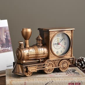Material: plástico Tamanho: 17 cm × 5,5 cm × 11 cm Peso: 350 g Design exclusivo de motor de trem — Este despertador é inspirado em um motor de trem vintage, com detalhes intrincados e acabamento em latão retrô, perfeito para amantes de trens e colecionadores. Display analógico clássico — O relógio possui um mostrador analógico simples e claro, com números e ponteiros grandes, facilitando a leitura em um piscar de olhos. Modelo decorativo — Com seu design detalhado, este relógio funciona como uma peça decorativa, ideal para adicionar personalidade ao seu quarto, sala de estar ou escritório. Operado por bateria — Alimentado por baterias, este relógio portátil é fácil de colocar em qualquer lugar do seu espaço, oferecendo conveniência e flexibilidade sem a necessidade de uma tomada elétrica. Perfeito para entusiastas de trens — Ideal para quem aprecia decoração vintage e com temas de transporte, este relógio é um ótimo complemento para qualquer coleção ou como um toque doméstico funcional.