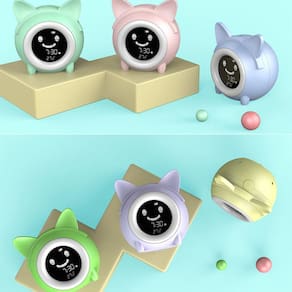 1. Construção durável e segura: Composto de ABS e silicone seguros para crianças, este despertador infantil é durável e tem uma longa vida útil. By the way, ele também tem uma função de termômetro. 2. Treino do sono infantil: 30 minutos antes da hora de acordar a luz ficará amarela, indicando que está quase na hora de começar o dia. Quando a luz verde se curvar, é hora de acordar! 3. Tudo em um: Tudo em um despertador de crianças, cresce com a criança. Se você está usando isso como um relógio, treinador de sono para crianças, temporizador de soneca, sistema de som do sono, luz noturna, termômetro interno ou apenas um simples despertador, este relógio tem tudo. 4. Luzes noturnas: Este despertador fornece diferentes cores de luz noturna para criar um melhor ambiente de sono para crianças / estudantes. A tela LCD pode ser ajustada com 4 níveis de brilho. 5. Máquina de som: Kids Clock tem sons de sono de alta qualidade para ajudar seus filhos a adormecer rapidamente. Diferentes sons de alarme para acordar seus filhos. Há também 8 sesta tempo. O volume do som pode ser ajustado.