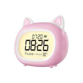 Material: plástico Tamanho: 11,5 x 4 x 10,5 cm Peso: 157 g Design divertido em forma de gato — este adorável despertador rosa apresenta um lindo formato de gato com orelhas, tornando-o uma adição divertida e charmosa ao quarto, mesa ou quarto de qualquer criança. Características multifuncionais — Com um alarme musical embutido e função de luz noturna, este relógio não só ajuda a acordá-lo, mas também fornece uma luz noturna suave para maior conforto. Display digital nítido — O display digital grande e fácil de ler mostra a hora, a data e a temperatura, facilitando a verificação rápida de crianças e adultos. Perfeito para crianças — Projetado especificamente para crianças, este relógio combina funcionalidade com diversão, ajudando-as a cumprir o cronograma e, ao mesmo tempo, servindo como item decorativo. Compacto e portátil — Medindo apenas 11,5410,5 cm e pesando apenas 157 g, é um despertador leve e portátil que se encaixa perfeitamente em uma mesa de cabeceira ou mesa.