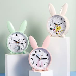 Material: plástico Tamanho: 165* 40* 110 mm Peso: 140 g Cor enviada aleatoriamente Design adorável de coelho: este encantador despertador apresenta lindas orelhas de coelho e uma ilustração divertida de coelho, tornando-o um complemento perfeito para qualquer quarto infantil ou decoração divertida de quarto. Silent Sweep Seconds: desfrute de um sono tranquilo com o movimento silencioso do relógio que evita sons perturbadores de tique-taque, ideal para quem dorme pouco ou para quem prefere um ambiente silencioso. Compacto e elegante: com um tamanho compacto de 165 x 40 x 110 mm, este despertador divertido e elegante cabe facilmente em mesinhas de cabeceira, mesas ou prateleiras, adicionando um toque alegre a qualquer espaço. Hora fácil de ler: os números pretos em negrito em um fundo branco garantem que a hora seja fácil de ler, tornando-a fácil de usar para crianças e adultos. Perfeito para estudantes e crianças: este lindo despertador não é apenas funcional, mas também serve como uma peça decorativa deliciosa para quartos infantis, dormitórios ou como uma adição divertida a qualquer espaço.