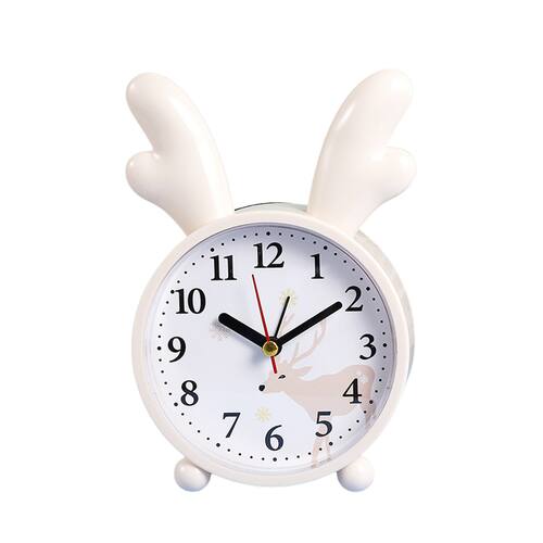 Material: plástico Tamanho: 165* 40* 110 mm Peso: 140 g Cor enviada aleatoriamente Design divertido de chifre de rena — Este encantador despertador apresenta lindos chifres de rena, tornando-o uma adição deliciosa e extravagante ao quarto ou mesa de qualquer criança. Silencioso e sem tique-taque — Desfrute de uma noite de sono tranquila com este relógio de movimento silencioso, ideal para quem prefere um ambiente tranquilo e repousante sem sons de tique-taque. Display analógico de fácil leitura — Com números pretos nítidos em um fundo branco e ponteiros ousados, este relógio oferece um design simples e clássico que é fácil para as crianças lerem. Perfeito para crianças e estudantes — O design divertido e a fácil funcionalidade o tornam a escolha ideal para crianças e estudantes, ajudando-os a acordar na hora certa e adicionando uma peça de decoração divertida ao quarto. Operado por bateria — Alimentado por baterias, este relógio portátil pode ser colocado em qualquer lugar, tornando-o conveniente para uso em mesinhas de cabeceira, mesas ou como relógio de viagem.