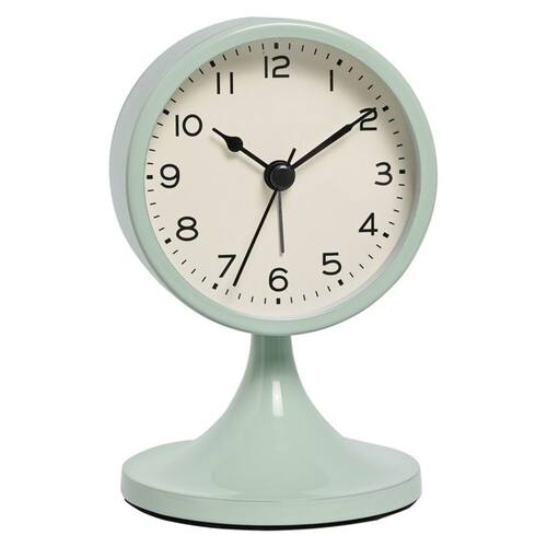 Material: metal Tamanho: 8* 8* 12,6 cm Peso: 300 g Design escandinavo elegante: este despertador apresenta uma aparência elegante de inspiração escandinava com um acabamento moderno em metal verde, perfeito para adicionar um toque elegante a qualquer quarto ou mesa. Mecanismo silencioso de não tique-taque: O movimento silencioso e sem tique-taque garante um ambiente tranquilo e silencioso, ideal para quem dorme pouco e cria uma atmosfera calma. Construção metálica durável: feito de metal de alta qualidade, este relógio foi projetado para ser durável, mantendo um design leve e compacto, perfeito para qualquer espaço. Tela de fácil leitura: o mostrador claro e simples do relógio com números pretos em negrito facilita a leitura da hora, garantindo que seja prático e funcional. Uso versátil: este despertador minimalista é perfeito para estudantes, quartos e escritórios, adicionando um toque vintage e moderno a qualquer ambiente e, ao mesmo tempo, servindo como um relógio confiável.