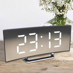 -Display LED curvo, o tempo pode ser visto claramente de vários ângulos, mais tridimensional. -Modo noturno, a luz LED desliga automaticamente no modo noturno e acende durante o dia. -Função de repetição, o tempo do intervalo de repetição padrão é de 5 minutos. -Superfície espelhada, pode ser feita com espelhos em casa ou no escritório. -Película protetora na superfície, protege o relógio contra danos.