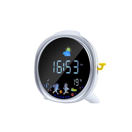 Material: ABS+PC Tamanho: 154* 141* 48 mm Peso: 337 g Tela colorida com personagens divertidos: apresenta um design divertido com personagens animados, tornando-a perfeita para quartos infantis ou áreas de estudo. Grande tela LCD: o relógio mostra um display digital grande e fácil de ler, mostrando hora, temperatura e data, o que é ideal para jovens alunos. Característica de luz noturna: equipado com uma luz noturna embutida, oferecendo um brilho suave para ajudar as crianças a se sentirem seguras e confortáveis enquanto dormem. Design multifuncional: além de ser um despertador confiável, ele também exibe a temperatura atual, adicionando funcionalidade extra para crianças e adultos. Perfeito para crianças e estudantes: projetado para envolver as crianças com seus elementos interativos, além de fornecer recursos essenciais, como leituras de temperatura e alarmes.
