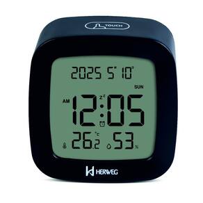 Despertador Digital Preto Herweg 2996 único - Características Gerais do Produto: Alimentação: Usa pilha palito AAA não inclusa Características técnicas: Alarme sonoro; Função snooze soneca para programar para despertar em seguida; Iluminação noturna; Lâmpada led; Visualização em 12h ou 24h; Função Termômetro C / F ; Touch; Umidade; Calendário em inglês Material: Plástico injetado; Visor de Acrílico Medidas: A: 8,0 x L: 8,0 x P: 4,5cm Modelo referência do produto: 2996-034 Acompanha o produto: 01 Relógio de 12 meses do Fabricante Manual de Instruções : 12 Meses de de Fábrica Marca: Não Informado