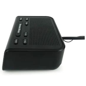 Nós sabemos que nem sempre conseguimos acordar ao som do primeiro sinal não é mesmo Pensando nisso esse rádio relógio possui a função de repetição do alarme. Agora, quando o alarme tocar e você quiser dormir mais um pouco, basta pressionar uma vez o botão de repetição do alarme e voltar a dormir. Nove minutos depois o alarme volta a tocar.