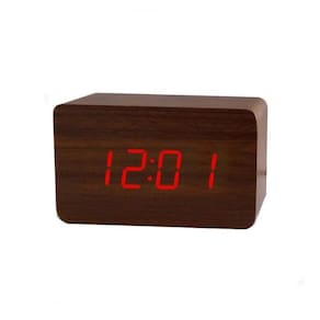 Despertador digital com design de madeira, ideal para decorar sua cômoda ou mesa de quarto. Este relógio combina a beleza l da madeira com a modernidade de um display digital e uma luz LED suave, criando um acessório perfeito para sua mesa de cabeceira. Ele tem várias funções práticas. Você pode definir alarmes personalizados para acordar na hora exata que quiser, e a função de repetição permite que você durma mais alguns minutos. Além disso, o relógio tem um modo de economia de energia para prolongar a vida útil da bateria. O display digital mostra claramente a hora, a data e a temperatura, mantendo você sempre informado. Além disso, você pode ajustar o brilho da luz LED para adaptá-la às suas preferências e criar o ambiente ideal para descansar ou acordar. Luz: vermelha Modo de alimentação: 3 pilhas AAA ou 5 V Tempo de configuração do cabo: 24/12 horas\ nA temperatura pode ser pressionada ou o botão\ nHora vista apenas quando ligada\ nDimensões: 5,9 cm x 10 cm x 4 cm\ nMaterial: plástico\ nCor: café