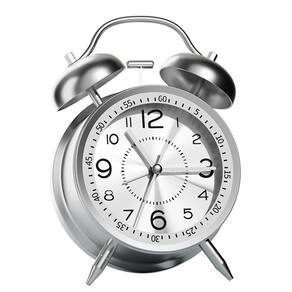 Material: metal Tamanho: 16* 12* 5 cm Peso: 290 g Acabamento prateado metálico elegante: este despertador apresenta um design prateado polido, oferecendo uma aparência moderna e elegante, perfeita para qualquer decoração de quarto, escritório ou casa. Operação silenciosa e sem tique-taque: O relógio utiliza um mecanismo sem tique-taque, garantindo um sono tranquilo e sem perturbações, sem sons irritantes. Mostrador luminoso para facilitar a leitura: equipado com um mostrador brilhante, este despertador permite fácil visibilidade à noite, garantindo que você possa ler a hora mesmo com pouca luz. Alarme alto e claro para pessoas que dormem muito: com seu design de campainha dupla, o alarme é alto o suficiente para acordar até mesmo as pessoas que dormem mais pesado, tornando-o ideal para dormir profundamente ou para quem dorme pesado. Design durável operado por bateria: alimentado por uma bateria confiável, este relógio é fácil de configurar e perfeito para uso em quartos, escritórios ou em viagens, sem a necessidade de tomadas.