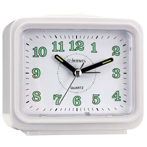 Marca: herwegmodelo: 2588 021 Estilo: tradicional Tamanho: pequeno Formato: retangular Funções Analógico despertador Especificações Sistema de energia: bateria Tipo de bateria: pilha aa, 1,5 volt não acompanha Mecanismo step movimento não contínuo do ponteiro Visor: acrílico Alarme com som campainha Iluminação noturna Snooze soneca Material: plástico Cor do mostrador: branco Cor da moldura: branco Cor dos detalhes: preto Acabamento: polido Medidas Largura: 112 mm Altura: 104 mm Espessura: 62 mm Peso: 175 g Acompanha eletrônica de 12 meses do fabricante Embalagem Manual de instruções Somos autorizada.Todos os produtos tem do fabricante. Ean: 7891228257771