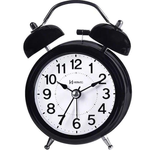 Despertador quartz pilha retrô branco herweg 2707-21 Estilo tradicional clássicoAlarme sonoroBase metal pintadoMecanismo stepUsa pilha aa não inclusas Medidas:Altura 12,5 cmLargura 8,7 cmEspessura 4,6 cm AcompanhaManual Certificado de garantia 12 meses