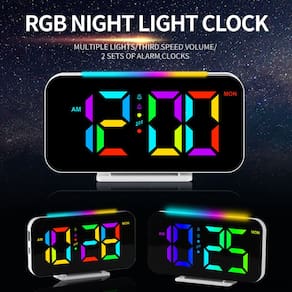 Material: plástico Tamanho: 160* 25,5* 86 MM Peso: 350 g Display de luz RGB vibrante: apresenta uma luz RGB colorida e personalizável na parte superior, criando uma atmosfera ambiente que adiciona um toque moderno ao seu quarto. Display digital grande e claro: a tela digital de fácil leitura mostra a hora, a data e outros recursos úteis, tornando-a perfeita para quartos ou espaços de estudo. Design multifuncional: este relógio oferece mais do que apenas a hora — inclui uma função de soneca, exibição de data e iluminação ambiente para atender a várias necessidades. Operado por bateria para maior comodidade: alimentado por baterias para facilitar a colocação em mesas, mesinhas de cabeceira ou prateleiras, sem a necessidade de tomadas de parede. Ideal para vários espaços: um relógio elegante e funcional, perfeito para quartos, escritórios, dormitórios ou como peça decorativa com seus recursos coloridos de luz LED.