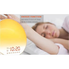 ?Sunrise Simulation Wake Up Light?Este despertador digital Sleep Aid foi projetado para todos, especialmente pessoas que dormem muito e crianças. A luz de simulação do nascer do sol com 7 sons is acenderá gradualmente de 10% de brilho para 100% por 30 minutos antes da hora de configuração do alarme. Se você acha que 30 minutos é muito longo, você pode definir o processo para 20 minutos ou 10 minutos. Acordado por natureza. ?Despertador duplo e soneca de suporte?Considerando que você pode precisar definir alarmes diferentes para seu familiar, criamos 2 alarmes para você. Além disso, a função de soneca foi especialmente projetada para quem precisa de mais 9 minutos para começar um novo dia. Basta pressionar o botão “Soneca” na parte superior do relógio, você terá mais de 9 minutos para dormir. Repetição de até 5 vezes.?7 cores claras e 20 de brilho ajustável?Existem 7 luzes que mudam de cor que você pode escolher, incluindo azul, índigo, roxo, vermelho, laranja, amarelo e verde. 3 níveis de exibição de tempo de brilho de LED e 20 níveis de brilho de iluminação ajustável. Rádio FM e 7 sons de alarme: será um rádio FM apenas quando você pressionar o botão “Rádio” no canto superior direito para ligá-lo. Pressione e segure o botão “Rádio FM” por 2 segundos e ele iniciará e digitalizará automaticamente todas as estações com frequência de 76 a 108 MHz. É incrível que você possa escolher 7 sons de alarme para acordá-lo, como canções de pássaros, ondas do mar, sequências, bipes, sinos de vento, música suave, música de piano. Volume ajustável de 16 níveis. ?Luz noturna e lâmpada de cabeceira?É também uma lâmpada de cabeceira/lâmpada de leitura. Será uma lâmpada de cabeceira/luz de leitura apenas quando você pressionar o botão ? no canto superior esquerdo para ligá-la. Você também pode pressionar o botão “+”/“-” para ajustar o brilho. A iluminação suave e quente oferece uma boa visão quando você alimenta seu bebê/vai ao banheiro/lê um livro à noite. Veja menos