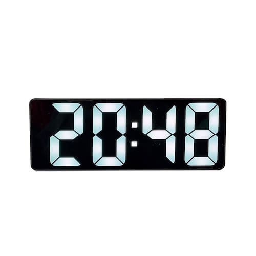 Material: plástico Tamanho: 16 cm × 6 cm × 2,5 cm Peso: Controle de brilho de nível 350G — Ajuste o brilho da tela de acordo com suas preferências com os três níveis disponíveis, garantindo visibilidade sem ser muito severo durante a noite. Elegante tela de espelho — O design moderno do espelho com uma tela de LED transparente o torna uma adição elegante e funcional a qualquer mesa de quarto ou escritório, refletindo uma estética minimalista. Operação silenciosa — Equipado com um movimento silencioso, este relógio garante um ambiente tranquilo sem nenhum som perturbador de tique-taque, perfeito para quem dorme pouco. Fonte de alimentação dupla — Alimentado pelas opções USB e bateria (cabo USB incluído), este relógio oferece flexibilidade de posicionamento e operação confiável. Grande display LED — Com um display de hora digital grande e fácil de ler, este despertador é perfeito para qualquer ambiente, garantindo que você sempre possa verificar a hora com clareza, dia ou noite.