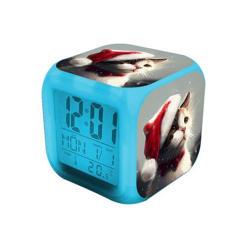 Material: plástico Tamanho: 8* 8* 8 cm Peso: 160 g Design festivo para gatos de Natal: este despertador LED apresenta um gato brincalhão usando um chapéu de Papai Noel, perfeito para adicionar um toque festivo ao seu quarto durante as festas de fim de ano. Tela LED que muda de cor: desfrute de uma tela vibrante e colorida que muda de tonalidade, criando uma experiência divertida e envolvente para crianças e estudantes. Função silenciosa para um sono tranquilo: o relógio funciona silenciosamente sem bater, garantindo uma noite tranquila e sem perturbações, ideal para quem dorme pouco. Relógio de cubo multifuncional: exibe hora, data e temperatura, tornando-o não apenas um despertador, mas uma adição prática ao seu quarto ou mesa. Compacto e fácil de usar: medindo 8 x 8 x 8 cm, este relógio pequeno e elegante é perfeito para mesas de cabeceira, mesas ou dormitórios.