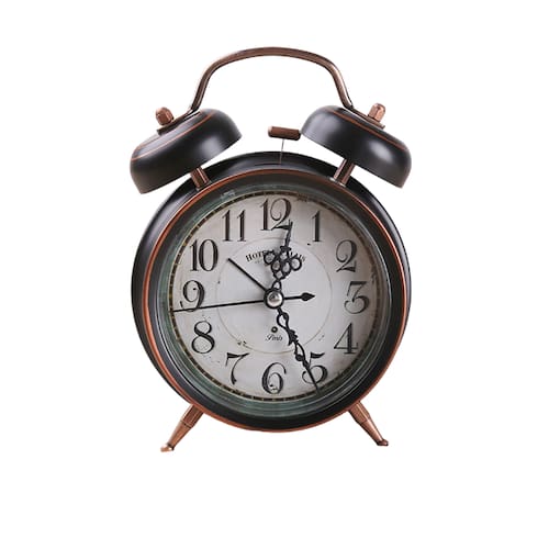 Material: plástico Tamanho: 12,2 cm × 6,4 cm × 17,3 cm Peso: 100 g Design retrô e elegante: este despertador de campainha dupla combina um acabamento clássico em preto e cobre com um visual vintage, adicionando um toque charmoso a qualquer quarto, escritório ou espaço de estudo. Alarme alto para pessoas que dormem muito: projetado com um alarme poderoso que chama a atenção, este relógio garante que pessoas que dormem profundamente acordem a tempo, tornando-o ideal para quem dorme pesado ou para quem tem dificuldade em se levantar. Luz de fundo para legibilidade noturna: equipado com luz de fundo, este relógio garante fácil visibilidade à noite, para que você possa verificar facilmente a hora mesmo em condições de pouca luz. Construção em plástico durável: feito com plástico resistente, este relógio é leve e durável, garantindo que ele possa lidar com o uso diário, mantendo intacta sua aparência elegante. Operado por bateria para maior comodidade: alimentado por baterias, este relógio é fácil de configurar e portátil, tornando-o ideal para uso em casa, no escritório ou em viagens.
