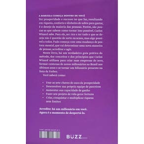 SINOPSE A riqueza começa dentro de você Ter prosperidade e sucesso no que faz, resultando em riqueza, conforto e dinheiro de sobra para gastar, é o desejo da maioria das pessoas. Porém, são poucas as que sabem como tornar isso possível. Carlos Wizard sabe. Para ele, ser rico e ter tudo o que se deseja não é questão de sorte ou acaso, mas algo possível a todos. Tudo começa com uma mudança de postura mental, que vai determinar uma nova maneira de pensar, acreditar e agir. Neste livro, há um verdadeiro guia prático do método, dos conceitos e dos princípios que Carlos Wizard utilizou para criar suas empresas do zero, formar centenas de novos milionários no Brasil nos últimos anos e se tornar um bilionário presente na lista da Forbes.