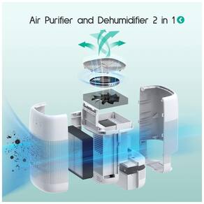 Purificador de ar e desumidificador 2 em 1 Afloia Q10 combina as funções de um desumidificador e purificador de ar. Estas 2 funcionalidades podem ser utilizadas separadamente ou combinadas. Não só tem dupla função com o mesmo preço de um purificador de ar ou desumidificador, mas também economiza espaço. Filtro H13 HEPA O sistema de filtragem H13 HEPA pode reter 99,97 das partículas finas tão pequenas quanto 0,1 mícron e grandes poluentes, como poeira, pêlos de animais e fumaça. Quase nenhum poluente pode escapar do poderoso purificador, desfrute livremente do ar fresco em seu quarto. Design simples e inteligente Uma aparência arredondada com controles de toque, inicialização com um botão, desligamento automático, cronômetro de 3 estágios 2h , 4h , 8h, velocidades de ventilador de 3 estágios. Quando o tanque de água estiver cheio, o indicador piscará em vermelho como um lembrete Quando o filtro precisar ser substituído, o indicador piscará em laranja. Capacidade do tanque 1000ml , 34oz, colete até 750ml de água por dia 86 F, 80 UR, área de cobertura do desumidificador 215 pés quadrados , 20
