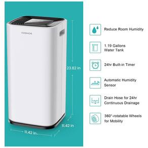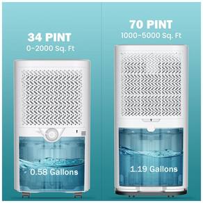 O que é um pint em desumidificadores A capacidade de um litro do desumidificador é a quantidade de umidade em litros que ele é capaz de remover de uma área em um período de 24 horas. É importante lembrar que o desempenho de um desumidificador pode ser afetado pelo tamanho e pelo nível de umidade de uma determinada área. Nosso desumidificador remove até 70 pint 50 Pint New DOE 2019 de umidade por 24 horas, adequado para ambientes médios a grandes em áreas de até 418m2 é capaz de ajustar a umidade de 30 a 85, você pode manter uma faixa de umidade saudável de 45 55 facilmente Um desumidificador perfeito para casa, caves, escritório, banheiro, quarto, cozinha, almoxarifado, sala de estar, lavanderia, adegas, forro removendo umidade. DESIGN ÚNICO PARA A CASA MODERNA Os desumidificadores Kesnos projetados com aparência elegante e moderna. Com rodas ocultas de fácil rotação de 360 C e alças ergonomicamente embutidas, você pode mover este desumidificador facilmente. É uma operação silenciosa que não o perturbará quando você dorme ou no trabalho e as velocidades do ventilador ajustáveis para várias opções. Com a função de roupa seca, basta colocar o desumidificador numa divisão onde pode pendurar a roupa molhada e deixar secar a roupa naturalmente. DESUMIDIFICADORES FÁCEIS DE USAR Simplesmente ajuste para a configuração de umidade ideal e deixe funcionar em um ciclo contínuo de 24 horas até que o tanque esteja cheio, momento em que ele se desligará automaticamente. 2 opções de drenagem para suas escolhas de drenagem Drenagem automática A mangueira de drenagem de 2 metros incluída para drenagem automática contínua do desumidificador sem esvaziar o balde de água. Drenagem manual O indicador de tanque de água de 1,18 galões e balde cheio permite que você saiba quando o balde de água precisa ser esvaziado. CONTROLE DE TOQUE INTELIGENTE Este desumidificador com display digital oferece uma leitura do nível de umidade conveniente e precisa, você pode operá lo facilmente. Controle automático de umidade basta ajustar a configuração de umidade ideal para detectar a umidade do ambiente e controlar a desumidificação. Temporizador de 24 horas permite predefinir a hora para ligar ou desligar a máquina. Desligar , ligar automaticamente desliga automaticamente quando o balde está cheio e liga o novamente após o balde ser esvaziado. Kesnos 70 pint 50 litros DOE 2019 Desumidificador com saída de mangueira de drenagem contínua para espaços de até 418m2 quadrados em quartos de porões de casa Controle inteligente de umidade e remove silenciosamente a umidade