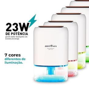 Trazendo um toque de modernidade e estilo, o Desumidificador Britânia conta com 7 opções de iluminação em cores diferentes.