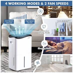 Aplicativo inovador e controle de voz você pode baixar o aplicativo Smart Life e controlar este desumidificador de qualquer lugar com Wi Fi ou Bluetooth. E o desumidificador também funciona com Alexa para controle de voz conveniente. Enquanto isso, o visor LED de fácil leitura e o painel de controle por toque facilitam a verificação e o ajuste de todas as configurações. 4 modos de trabalho e 2 velocidades do ventilador este desumidificador Wi Fi inteligente vem com 4 modos secagem automática, contínua, suspensão, ventilador e 2 velocidades alta, baixa para atender a todas as suas necessidades. O modo automático inteligente ajuda a manter a umidade constante que você deseja. Além disso, o modo de secagem contínua é perfeito para secar suas roupas e toalhas, principalmente em dias de chuva. 2 opções de drenagem e proteção contra transbordamento o desumidificador vem com um tanque de água de 5L, 1,3 galão com nível de água visível, permitindo que você veja a água coletada. O desumidificador desligará automaticamente quando o tanque de água estiver cheio e você poderá esvaziar a água manualmente. Além disso, uma mangueira de drenagem de 1 m, 3,3 pés de comprimento está incluída para drenagem contínua. Operação silenciosa e design cuidadoso o modo de suspensão de baixo ruído, a função de tela desligada e o temporizador inteligente de 0 a 24 horas podem oferecer a você um sono tranquilo e doce enquanto economiza energia. O reservatório de água com alça destacável facilita a retirada da água. Além disso, o desumidificador possui um filtro destacável e lavável para facilitar a manutenção
