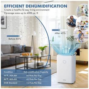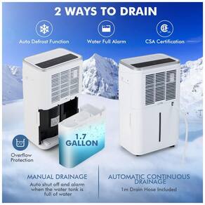 3 modos de operação e 2 velocidades do ventilador 1. Modo automático mantém de forma inteligente a umidade constante desejada 2. Modo de secagem contínua seca rapidamente suas roupas molhadas, toalhas e muito mais 3. Modo de dormir cria ruído mais baixo e mantém um nível de umidade adequado em 60. Além disso, a velocidade do ventilador tem 2 níveis ajustáveis alto, baixo. 2 maneiras de drenar e grande tanque de água Você pode facilmente esvaziar o tanque de água quando estiver cheio ou conectar a mangueira de drenagem incluída para drenagem contínua por gravidade. O tanque de água de grande capacidade de 6,4 L , 1,7 galão evita o esvaziamento frequente da água. Além do mais, quando o tanque de água estiver cheio, o desumidificador desligará automaticamente e emitirá um zumbido. Fácil e de operar Com o painel de controle de toque LED inteligente, você pode definir facilmente o modo, a velocidade, o cronômetro e o nível de umidade desejado entre 30 e 80. As luzes indicadoras de 3 cores podem mostrar a umidade atual azul 65. Além disso, o bloqueio para crianças pode proteger seus filhos de possíveis danos. Recursos humanizados e fácil movimentação A tela do filtro pode ser removida com facilidade, facilitando a limpeza e a manutenção. O temporizador 0 24H permite definir livremente o tempo de desligamento automático e reduz o consumo de energia