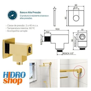 Desviador Quadrado Gold para Chuveiro Quadrado