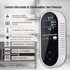 - Detectores de gás e monóxido de carbono 4 em 1: detector de gás natural plug-in e alarme de monóxido de carbono pode detectar níveis de monóxido de carbono e gás natural, bem como a temperatura e umidade do ambiente circundante.
