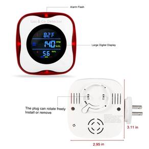- ?Combinação 4 em 1 detector de gás e monóxido de carbono?Tela redonda grande digital de alta definição recentemente atualizada e otimizada, plug and play, capaz de detectar e exibir níveis de temperatura, umidade, gás natural e monóxido de carbono em tempo real.