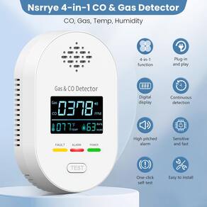 O detector de gás e monóxido de carbono 4 em 1 em tempo real oferece monitoramento contínuo e confiável da qualidade do ar da sua casa. Com uma tela digital grande e fácil de ler, mostra simultaneamente os níveis de monóxido de carbono (PPM), concentrações de gás combustível (%LEL), temperatura (°F) e umidade (RH%), dando a você um instantâneo abrangente do seu ambiente interno num relance. Equipado com sensores altamente precisos e sensíveis, este detector detecta de forma rápida e precisa níveis perigosos de gás, oferecendo tranquilidade ao ajudar a proteger sua família de ameaças invisíveis como monóxido de carbono e gases combustíveis. Quando as concentrações de gás excedem os limites predefinidos, ele aciona um alarme sonoro de 85 dB e avisos visuais, alertando você sobre possíveis vazamentos ou condições perigosas imediatamente. Projetado para monitoramento 24 horas por dia, 7 dias por semana, mantém um olho atento ao gás natural, monóxido de carbono, temperatura e umidade o tempo todo. Isso o torna um dispositivo de segurança essencial para evitar acidentes causados por vazamentos, má ventilação ou mudanças climáticas internas. Versátil e prático, este detector é perfeito para uso em casas, apartamentos, cozinhas, porões e outros espaços fechados onde podem ocorrer vazamentos de gás ou acúmulo de monóxido de carbono. Com sua fácil instalação e proteção contínua, é uma ferramenta indispensável para garantir a segurança da sua casa.