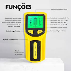 O Detector de Metais 5 em 1 é uma ferramenta multifuncional indispensável para profissionais da construção civil, eletricistas, marceneiros e para uso doméstico. Com corpo compacto e fácil de transportar, ele oferece uma detecção precisa e profunda em diversos materiais como madeira, metais e fios elétricos, proporcionando segurança e eficiência na execução do trabalho.