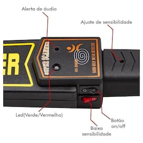 Detector de metal profissional - hz-gc3003 - carbone Loja: carbone artigos militares Detector de metais portatil alta sensibilidade metal scanner ======================================================================= O detector de metal é uma mão de desempenho e alta performance, projetado para atender as industrias de segurança. Pode ser usado na vistoria de pessoas e pacotes, útil para seguranças, escolas, eventos, etc. Ele identifica metais grandes ou pequenos, podendo optar por um aviso sonoro, luminoso ou vibratório. Além de ser muito leve e de fácil utilização. Desempenho e características: - fácil de operar;- quando a tensão suficiente, a luz indicadora brilha e dispara o alarme;- tem alarme de luz e som vibração solicitado o modo dual;- capaz de detectar metais grandes, mas também pode detectar pequenos objetos de metal;- pode ser ajustado de acordo com a sensibilidade. informações técnicas: - sensibilidade de detecção: diâmetro 2.5mm bola- fonte de alimentação: 9v bateria (6f22nd)(atenção: não incluso fonte de energia)- consumo de energia/potência: 270 mw- frequência de operação: 22 khz- corrente de operação: menos do que 50ma- operação de temperatura:-5º para 55 c especificações: - tipo: detector de metais- poder de funcionamento: 9 v- modo de alarme: som/conduziu a luz/vibração- face de detecção- alerta de áudio- lida com metal perfeitamente- baixa sensibilidade- soquete de bateria recarregável- cor do led: (verde/ vermelho)- ajustador sensibilidade- interruptor on-off- tampa de bateria- botão vibrador- faixa de medição: 0-10- sonda de metal: pin- aplicação: inspeção de segurança, ocasião pública- peso líquido: 405g- dimensões: 41 (l) x 8.5 (w) x 9.5(h) incluso no pacote01 detector de metais =======================================================================Clique no botão comprar agora para garantir detector de metais portatil alta sensibilidade metal scanner pelo melhor preço
