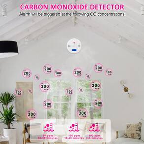 - Critérios de alarme para maior segurança: proteja sua casa com limites específicos de alarme — 50ppm (alerta dentro de 60-90 minutos), 100ppm (dentro de 10-40 minutos) e =300ppm (dentro de 3 minutos). O alarme soa a nada menos que 85 dB para cobrir até 20 a 40 m² em caso de perigo.