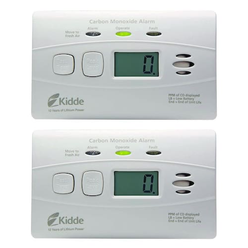 Kidde Detector de monóxido de carbono com bateria de 10 anos, display digital, 3 LEDs, indicador de substituição, memória de nível máximo, pacote com 2