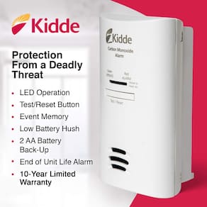 Kidde Detector de monóxido de carbono, plugue na parede com bateria AA reserva, botão de teste silencioso
