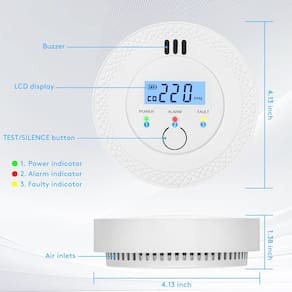 - Visor LCD: Este detector de monóxido de carbono tem um visor LCD digital que você pode ler em tempo real. Inclui densidade de CO e exibição de energia. O LCD não fica ligado o tempo todo quando estiver funcionando
