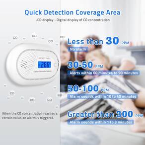 - Alarme rápido de monóxido de carbono: este alarme detector de monóxido de carbono usa um sensor eletroquímico de monóxido de carbono atualizado, que pode emitir um som superior a 85 decibéis e piscar uma luz LED vermelha para alarme