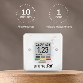 - Resultados em minutos: o único monitor de radônio verdadeiramente portátil no mercado que oferece medição contínua de radônio a cada 10 minutos, garantindo que você fique informado sobre os níveis de radônio no porão da sua casa em todos os momentos.