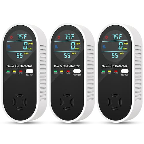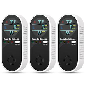 Detector de vazamento de gás natural e detectores de monóxido de carbono - 4 em 1 natural, propano, Co e detector de vazamento de gás - Detectores de monóxido de carbono conectados - Detectores de temperatura e umidade para casa, RV (pacote com 3)
