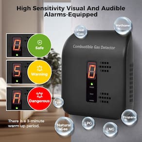 - Alarmes visuais e audíveis - Equipado com um alarme alto de 85 dB e um visor LED brilhante para rastreamento preciso da concentração de gás. Fique alerta contra vazamentos de gás natural com este detector de alarme de gás para casa e trailers.